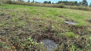 - rovinatý, vyčistený pozemok oplotený pletivovým plotom z troch strán